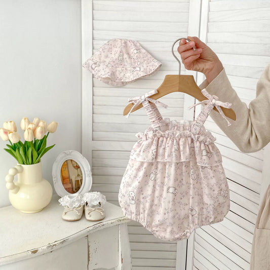 Summer Arrival Baby Girls Cute Sleeveless Rabbits and Flowers Pattern Onesies