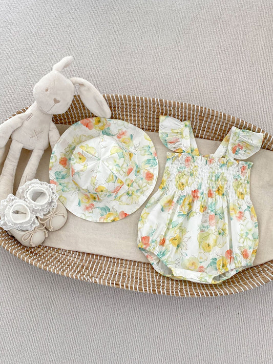 Summer Design Baby Girls Oil Floral Sleeveless Square Neck Strap Onesies