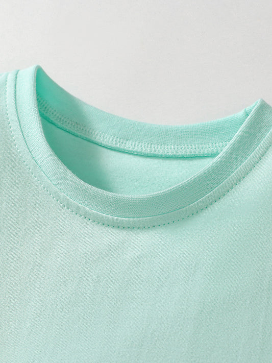 Summer Baby Kids Simple Color Patchwork Top and Plain Pants Casual Clothing Set