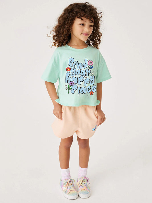 Baby And Kids Girls Floral Words Print Top And Shorts Casual Clothing Set