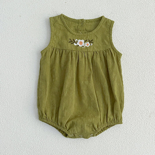 Summer Baby Girls Sleeveless Floral Embroidered Pattern Simple Dress And Onesie – Princess Sister Matching Set