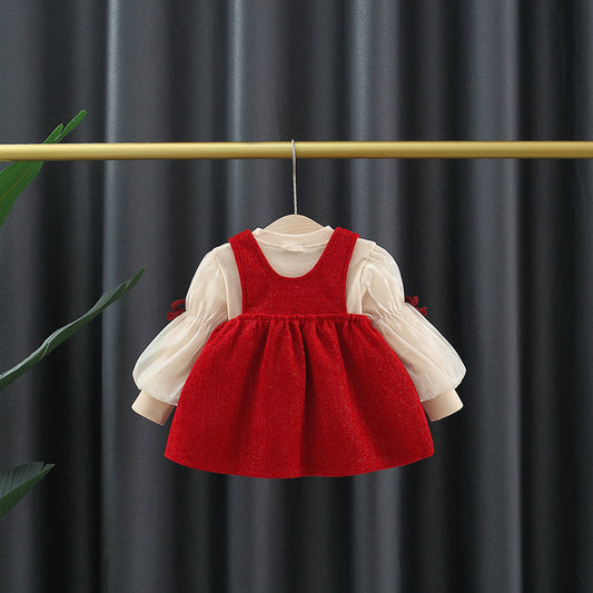 Autumn and Winter Arrival Baby Girls Long Sleeves Crew Neck Top and Overalls Dress