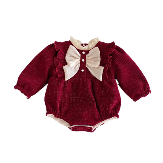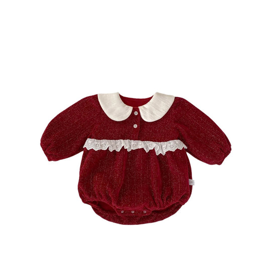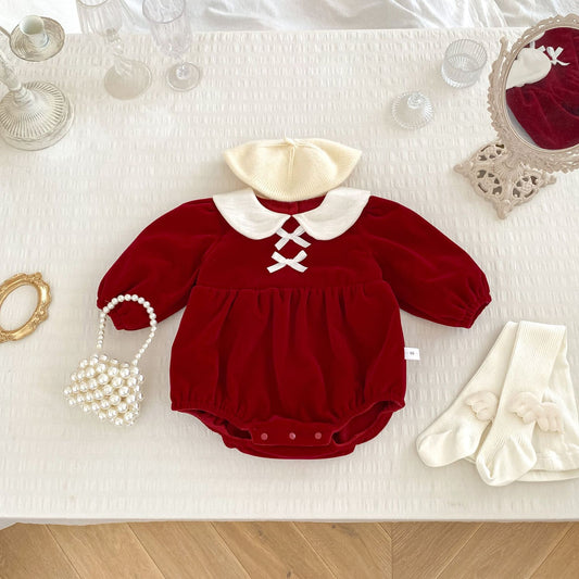 Autumn and Winter Arrival Baby Girls Long Sleeves Peter Pan Collar Christmas Onesies