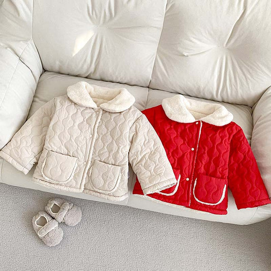 Arrival Baby Kids Girls Color Patchwork Single Breasted Thick Fleece-inside Coat