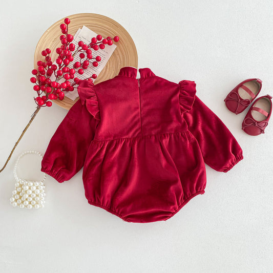 Autumn and Winter Arrival Baby Girls Long Sleeves Ruffle Neck Cozy Fleece Onesies Bodysuits