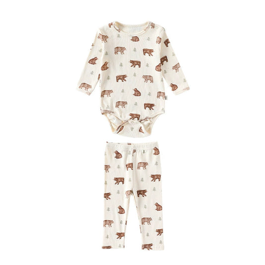 Baby Unisex Long Sleeves Casual Animals Pattern Crew Neck bodysuit and Pants Clothing Sets