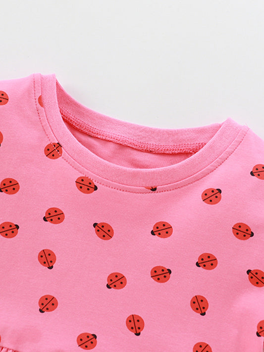 Summer Arrival Baby Kids Girls Short Sleeves Ladybird Print Pink Dress