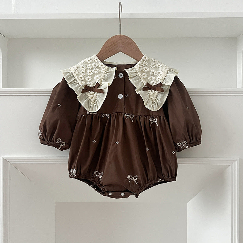 Dress your little princesses in this charming autumn set featuring long-sleeve bodysuit and a dress adorned with delicate bows, embroidered floral patterns, and a sweet collar. Perfect for sisterly matching moments, this outfit combines cozy comfort with playful elegance, making every day feel like a fairytale.