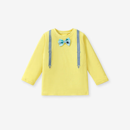 This charming long-sleeve T-shirt features a playful bow-knot detail, perfect for adding a touch of whimsy to your little girl's autumn wardrobe. Designed in a stylish European and American fashion, it combines comfort and cuteness for everyday adventures. Soft fabric keeps her cozy while the unique bow-knot adds a fun, fashionable twist to her look.