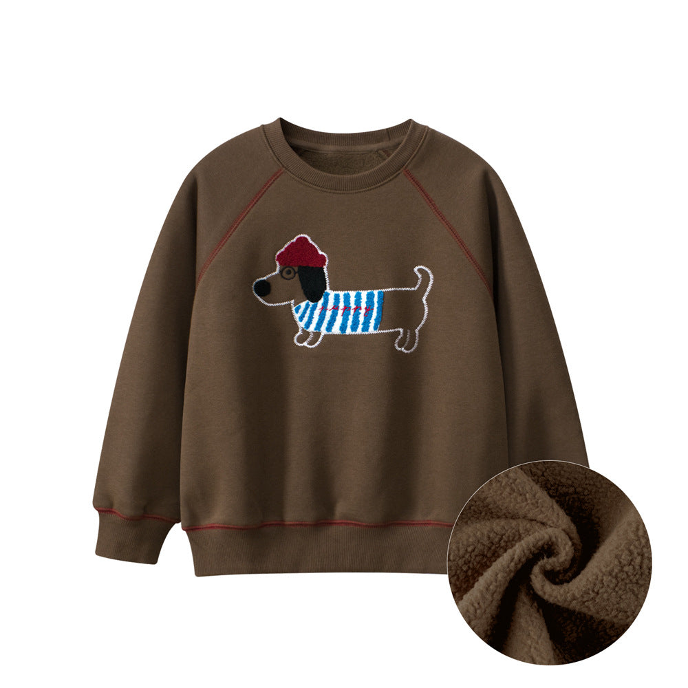 Arrival Baby Kids Puppy Embroidered Pattern Crew Neck Long Sleeves Warm Cozy Pullover