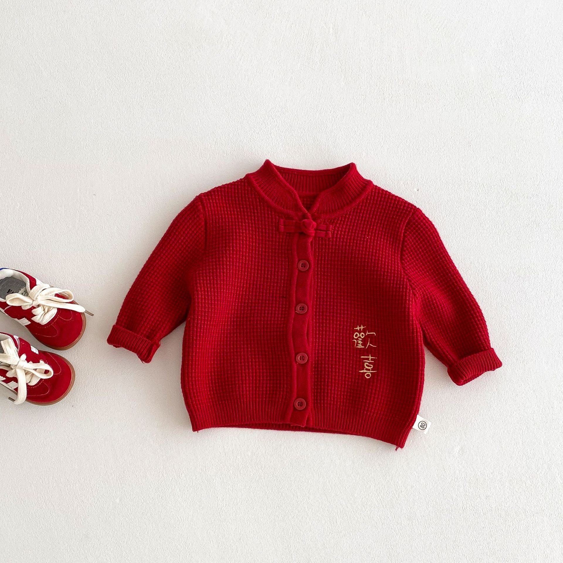 Autumn and Winter Arrival Baby Kids Unisex Letters Embroidery Pattern Long Sleeves Casual Cardigan