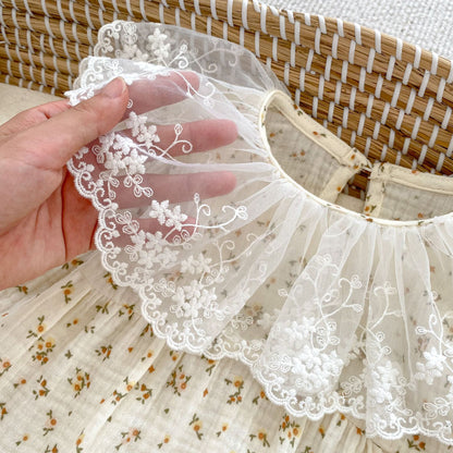 Autumn Ditsy Flower Pattern Mesh Collar bodysuit
