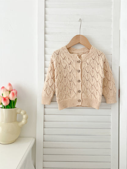 Autumn Arrival Baby Kids Girls Comfortable Hollow-out Argyle Knitted Long Sleeves Cardigan