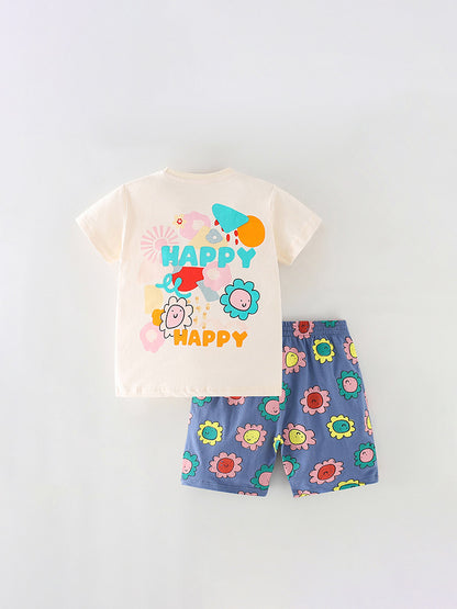 Baby And Kids Boys And Girls Cartoon Short Sleeves Top And Shorts Casual Clothing Set