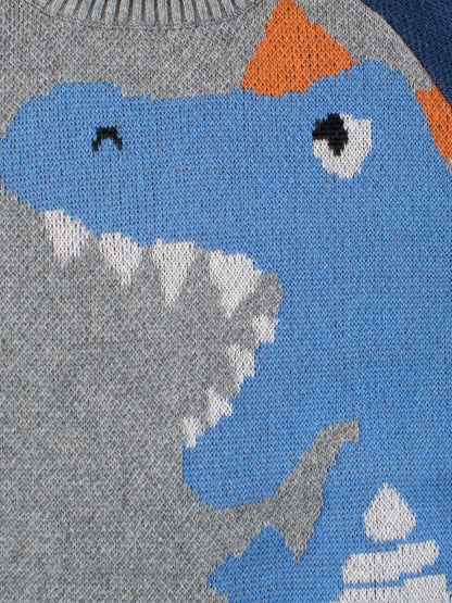 Baby Boy Kids Frightened Dinosaur Cartoon Crew Neck Long Sleeve Knitwear Pullover