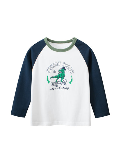 Baby Boys Dinosaur Sporting Cartoon Color Patchwork Crew Neck Long Sleeve Pullover
