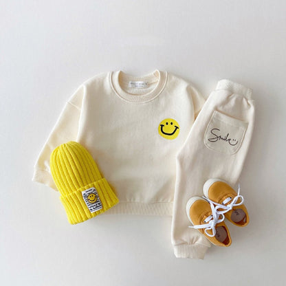Baby Girls Smile Face With Letter Smile Top Combo Long Pants In Spring Autumn