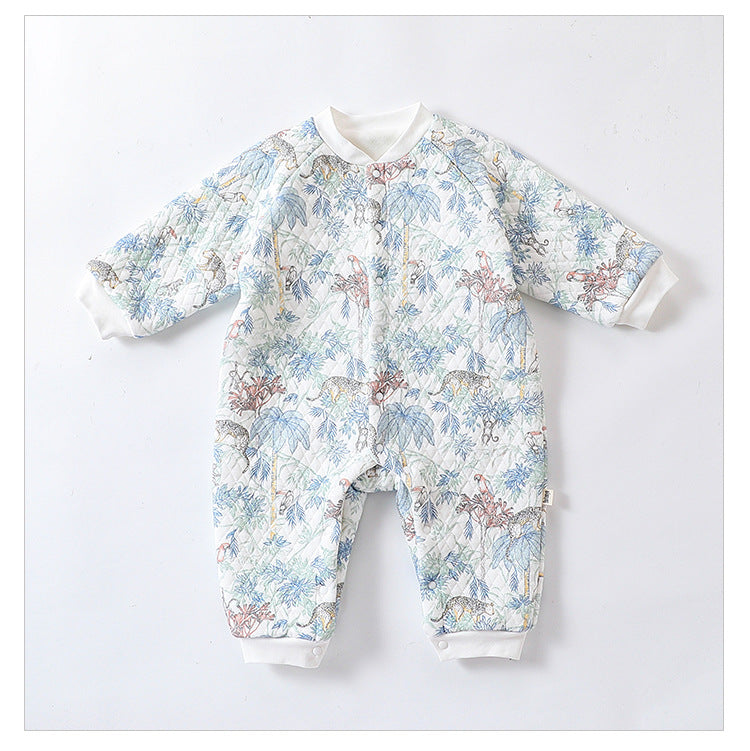 Baby Unisex Cartoon Print Cotton Padded Thickened Winter Romper