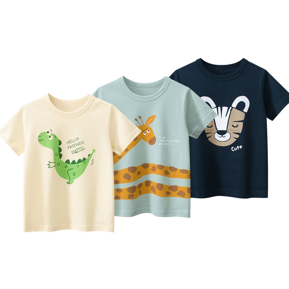 Elevate your little one's wardrobe with this set of boys’ t-shirts featuring charming cartoon patterns inspired by contemporary European and American styles. Crafted for comfort and durability, these shirts offer a refined yet playful look, perfect for everyday wear or casual outings. The blend of classic design and whimsical graphics ensures a stylish, versatile addition that complements any young boy’s personality.
