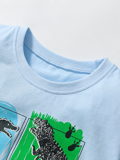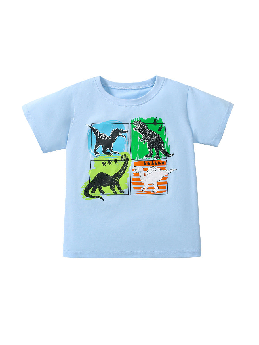 Boys Dinosaur Cartoon Print T-Shirt In European And American Style For Summer