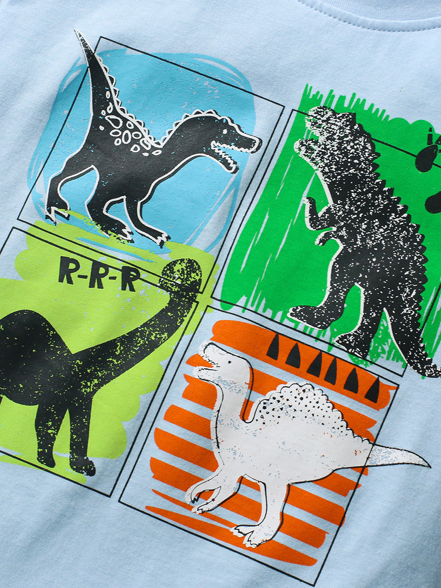 Get ready for some dino-mite summer fun with our Boys Dinosaur Cartoon Print T-Shirt! This stylish tee features a fun and playful dinosaur design in a trendy European and American style. Perfect for warm weather, your little one will love the comfortable fit and you'll love the unique and eye-catching look. Don't miss out, grab one now!
