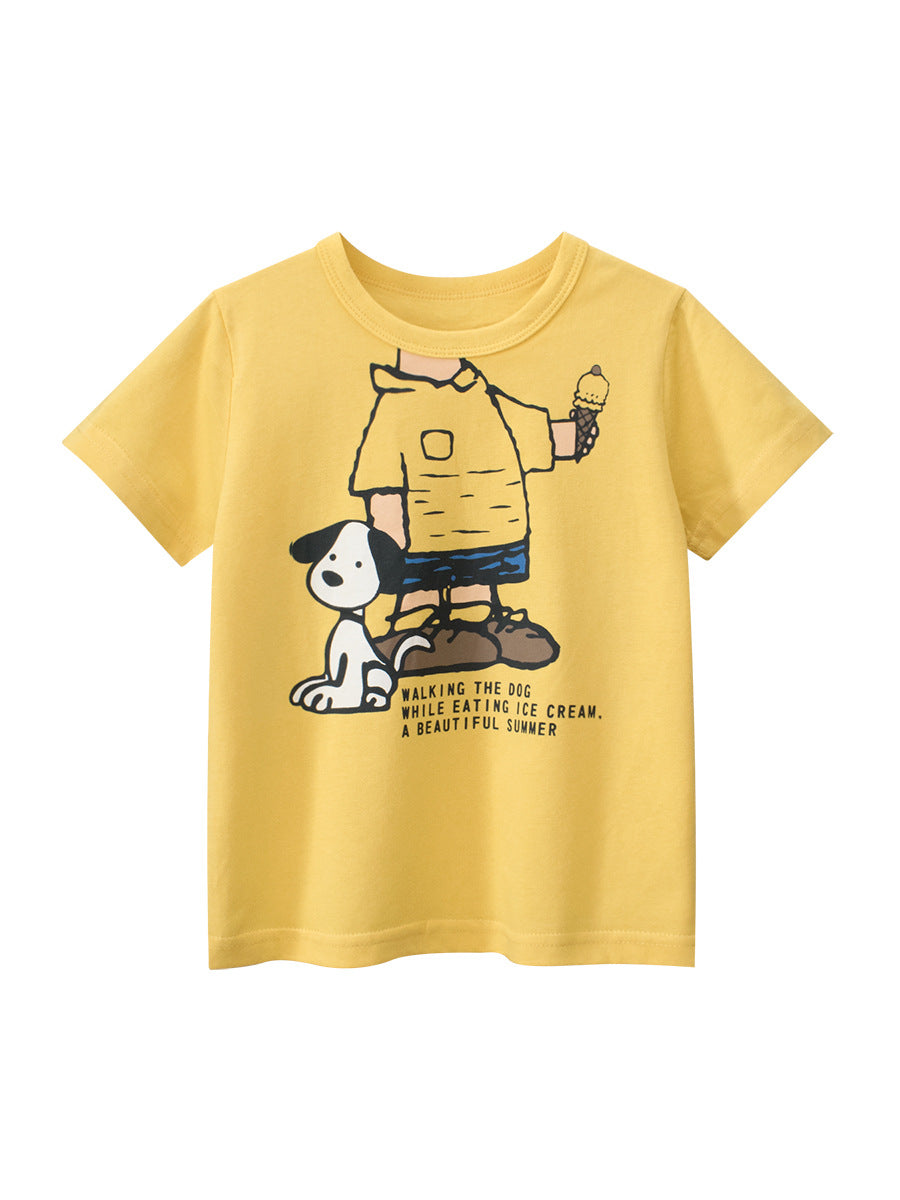 Boys’ Dogs Cartoon And Letters Print T-Shirt In European And American Style