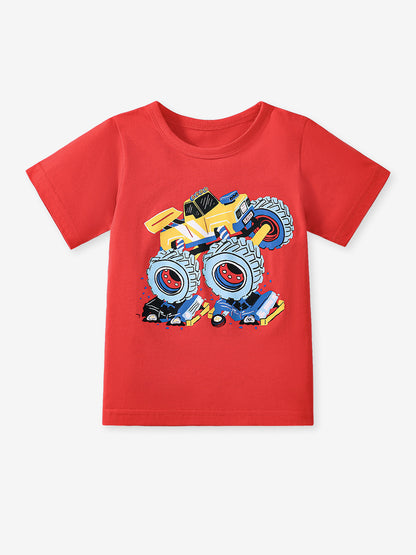 Boys’ Suv Cartoon Pattern Short Sleeves T-shirt in European and American Style for Summer