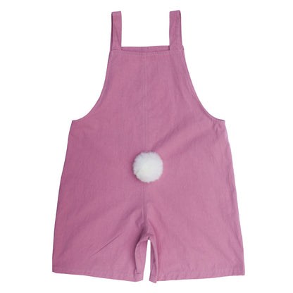 🩷 Playful Design: Charming pink overalls featuring an adorable rabbit tail detail that adds a whimsical touch.
