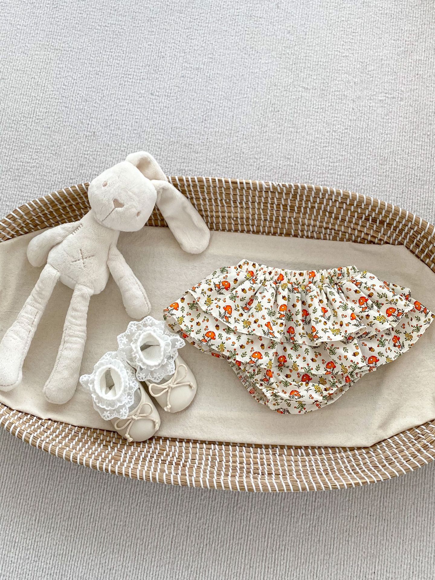 Delicately designed for comfort and charm, these floral ruffle shorts bloomers offer a soft, breathable fit ideal for your baby girl’s everyday adventures. The elegant floral pattern and gentle ruffles add a refined touch, making them perfect for both casual outings and special occasions. Crafted to ensure ease of movement and lasting comfort, these bloomers blend practicality with timeless style.