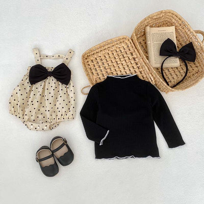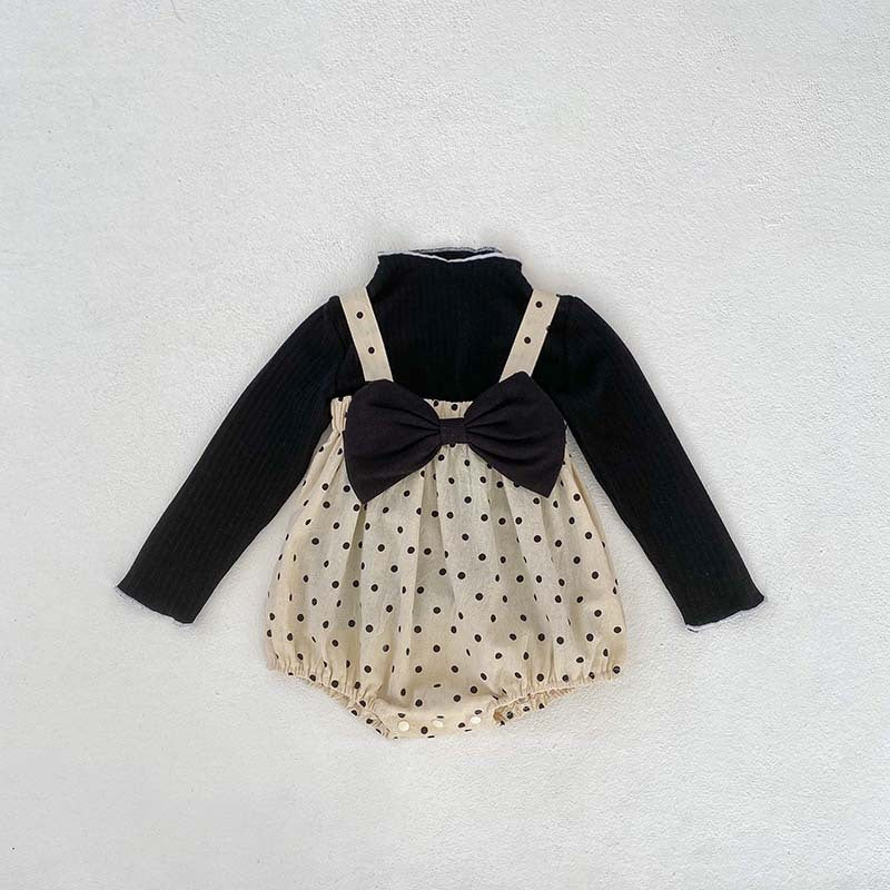 Arrival For Spring/Autumn: Polka Dot Overall bodysuit And Long Sleeve Base Layer Top Set