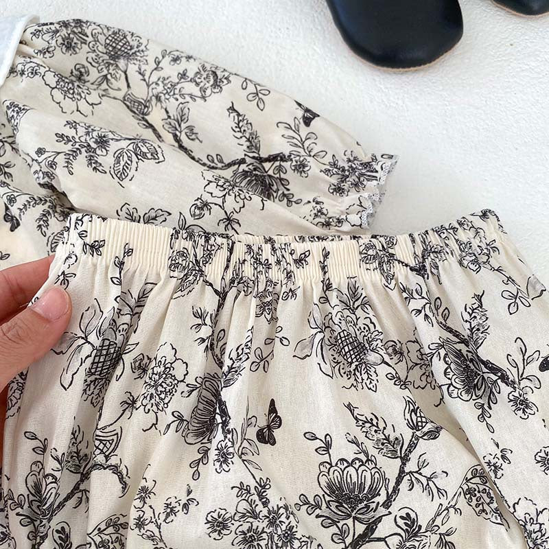 Arrival For Spring: Floral Painting Pattern Top And Shorts Set