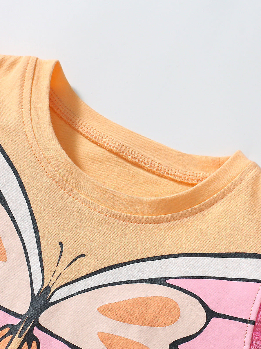 This elegant summer set features a delicate butterfly design complemented by intricate lace sleeves, paired with a graceful pleated skirt. Crafted for comfort and style, it ensures your little girl stays cool and charming during warm days. Perfect for special occasions or everyday wear, this ensemble blends delicate details with timeless sophistication.