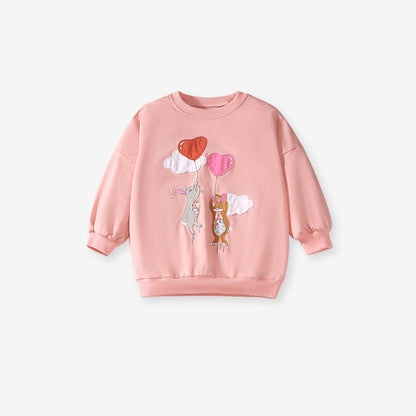 Spring and Autumn Girls Cartoon Rabbit and Balloon Pattern Long Sleeves Crew Neck Top Sweatshirt and Polka Dots Pants Clothing Set