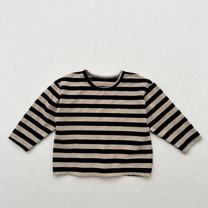Spring Baby Kids Vintage Striped Crew Neck Long Sleeve Shirt