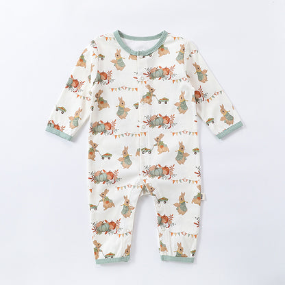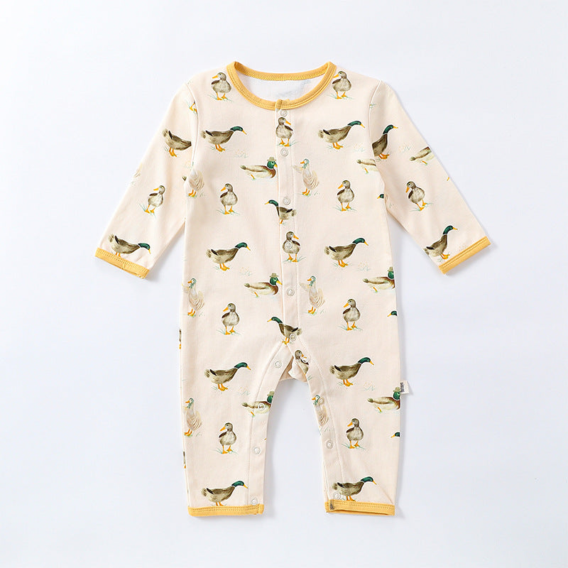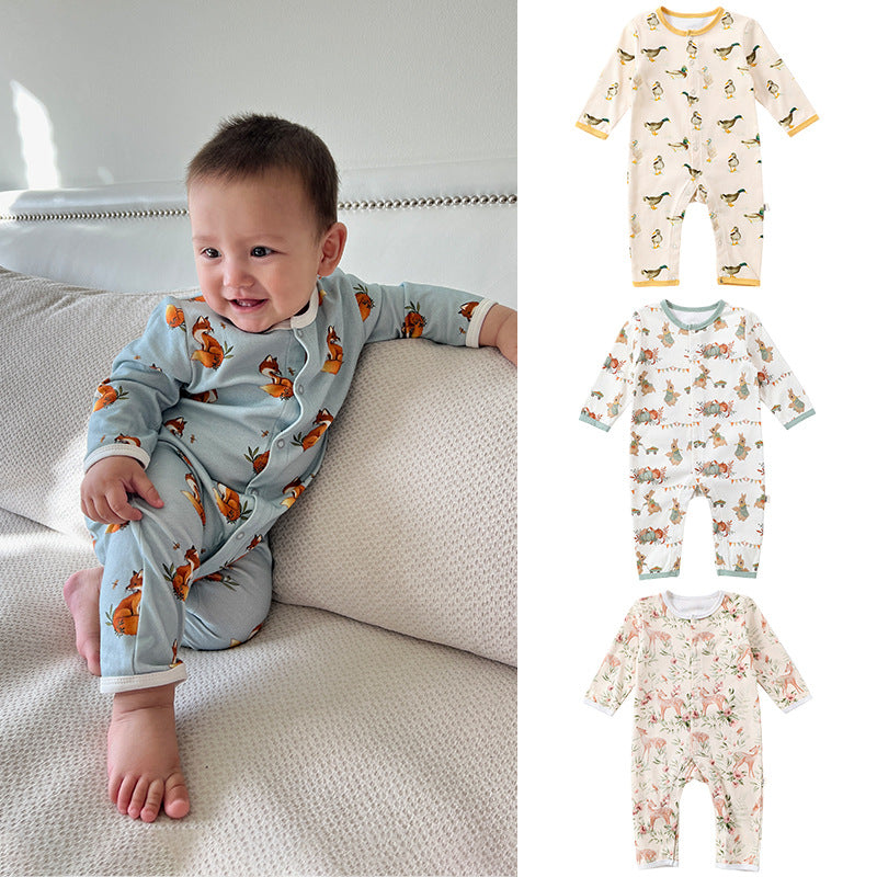 Spring Arrival Animals Cartoon Print Crew Neck Single Breasted Comfy Rompers