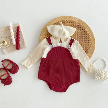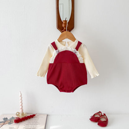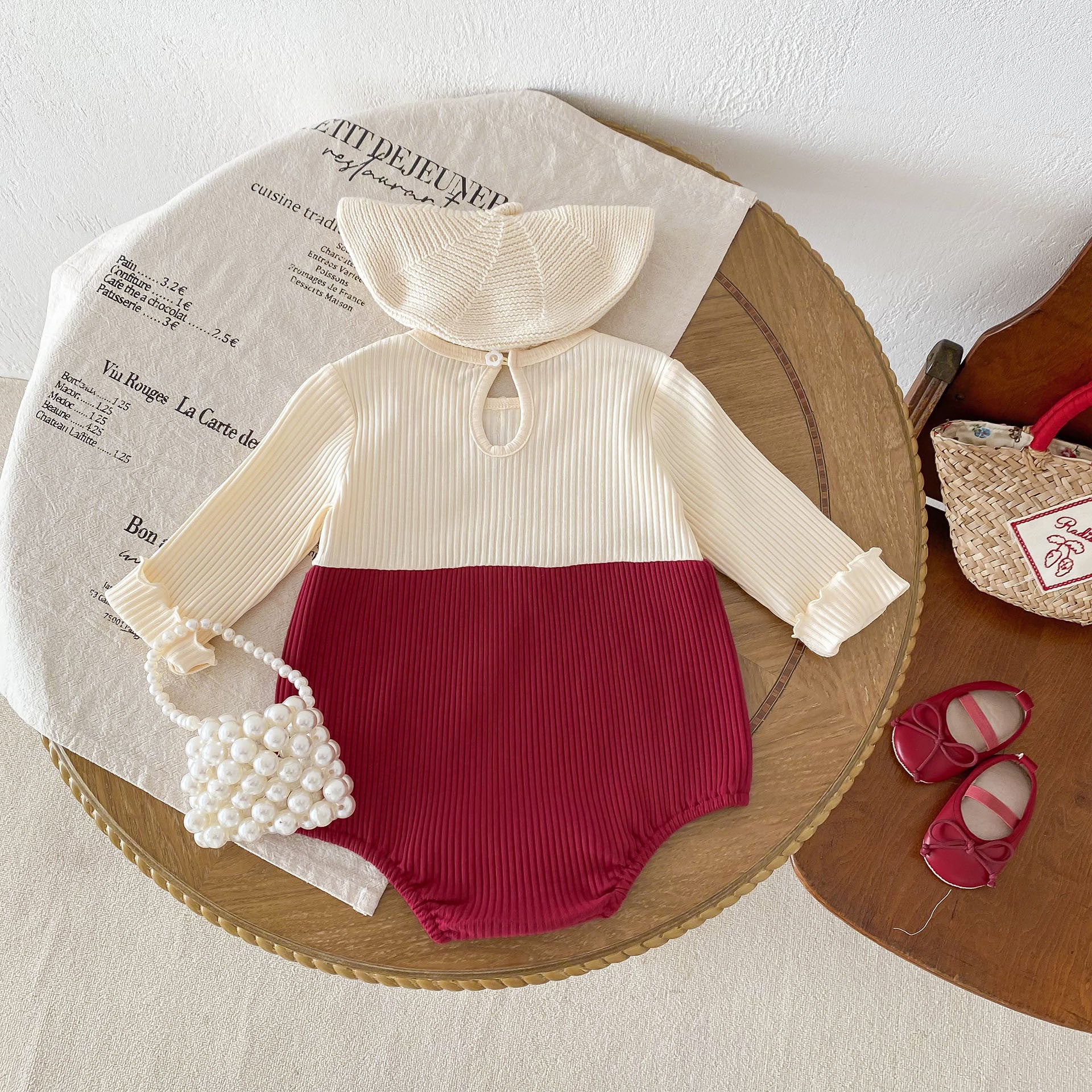 Spring Arrival Baby Color Patchwork Long Sleeves bodysuit For Girls