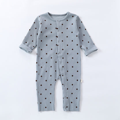 Spring Northern European Style Dots Print Crew Neck Comfy bodysuit/Romper