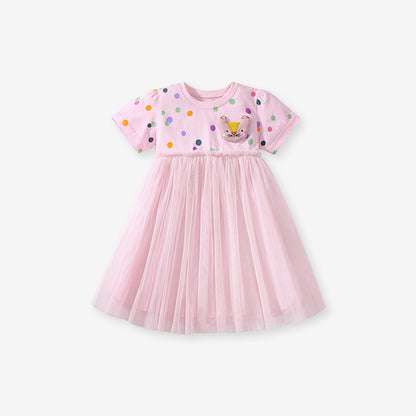 Summer Arrival Polka Dots Pattern Short Sleeves Tulle Patchwork Dress for Stylish Girls
