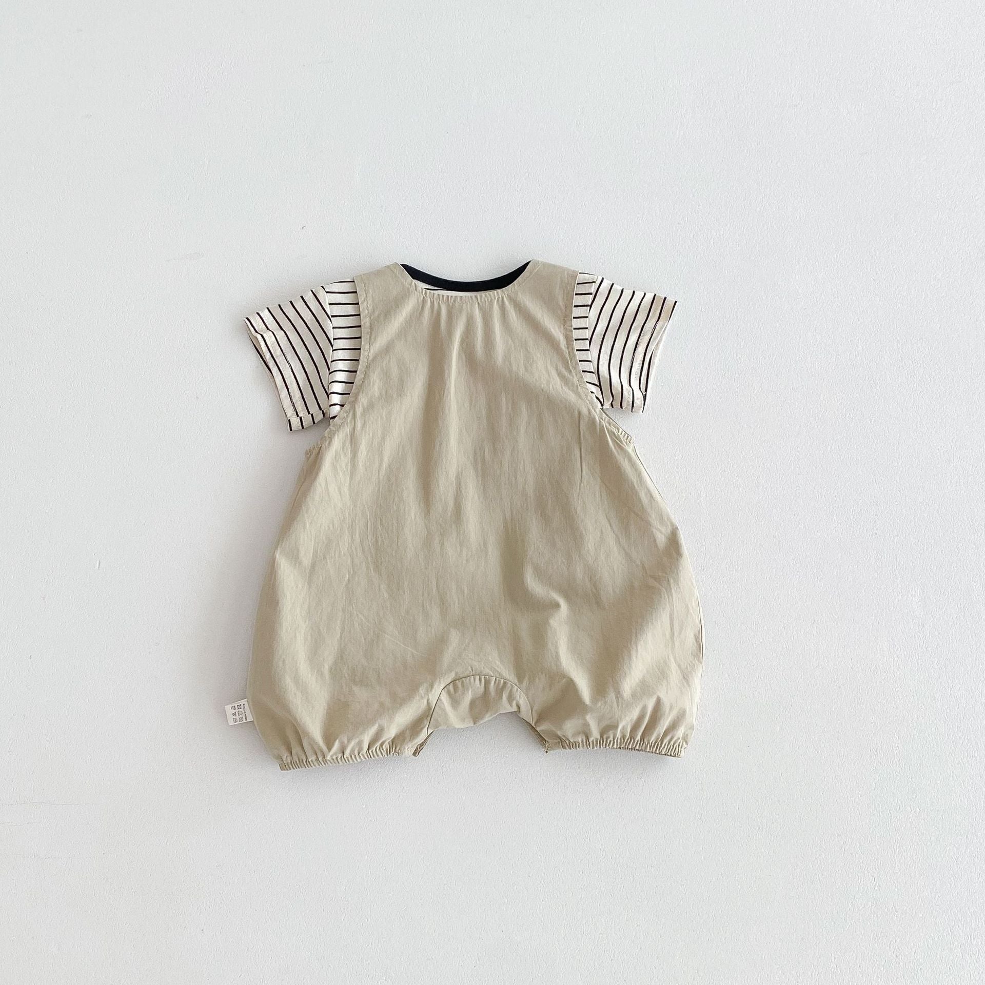 Perfect for warm weather play, this two-piece set combines a classic striped short-sleeve tee with comfortable plain overalls. The soft, breathable fabric keeps little ones cool and comfortable all day long. The striped top adds a playful touch while the overalls provide easy dressing and secure fit. Ideal for everyday wear, playdates, or casual outings. Available for both boys and girls, this versatile set is a summer wardrobe essential.
