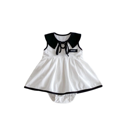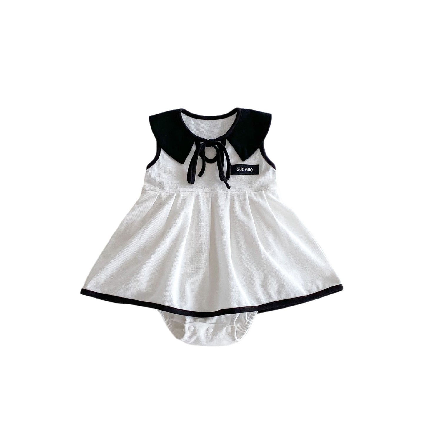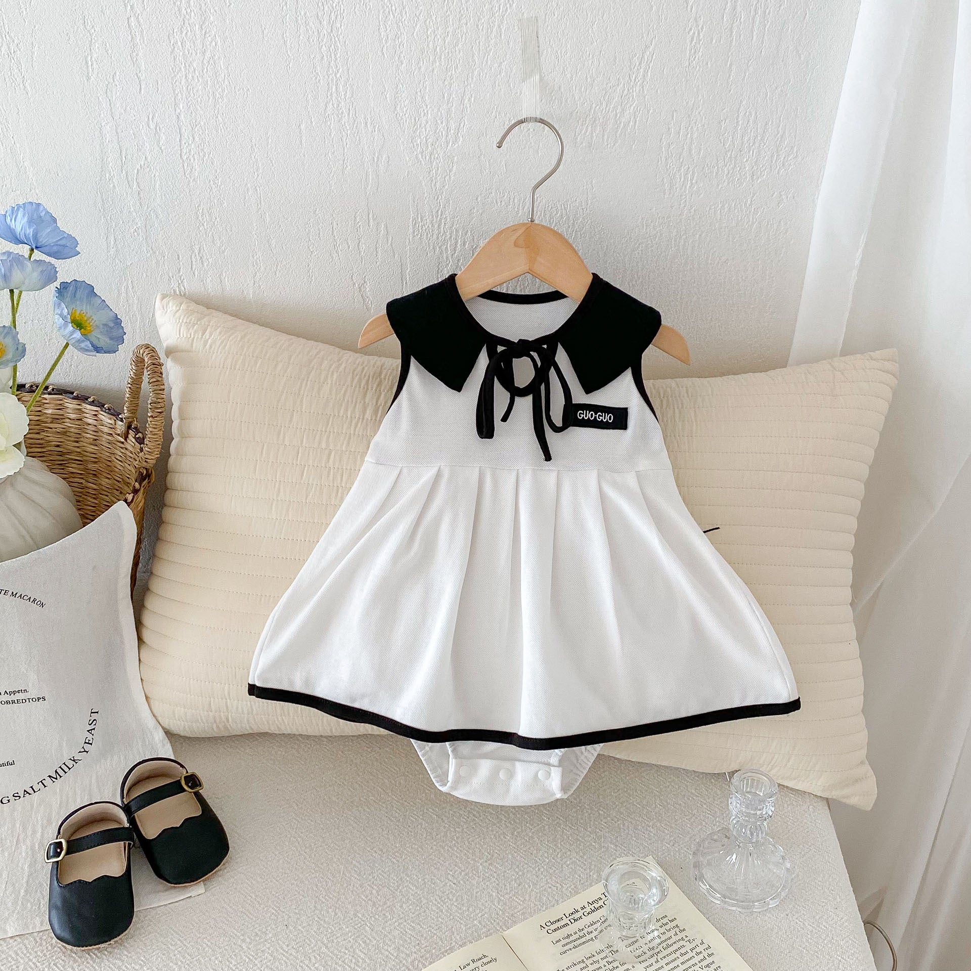 Summer Arrival Baby Girls Sleeveless Letters Pattern Preppy Collar bodysuit Dress