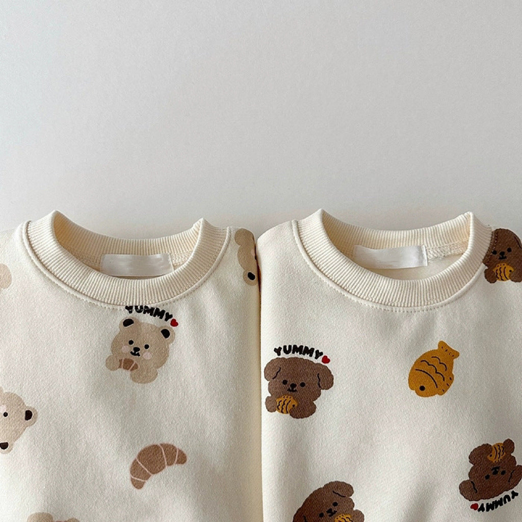 Unisex Baby And Kids Apricot Animals Cartoon Top And Pants Casual Home Clothing Set