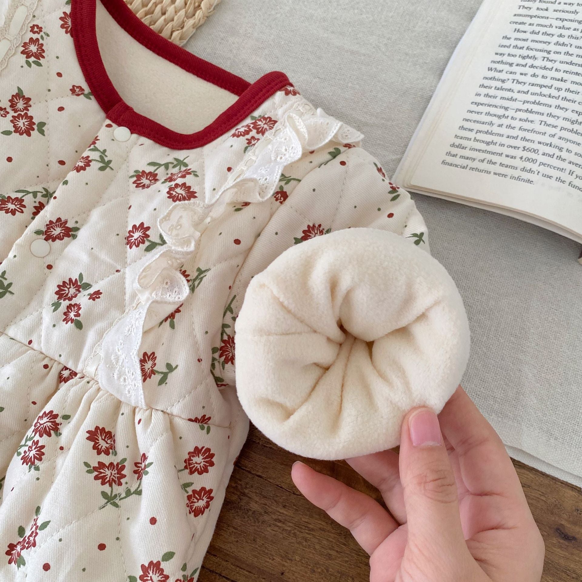 Winter Arrival Baby Girls Long Sleeves Flowers Pattern Fleece-Lined Rompers
