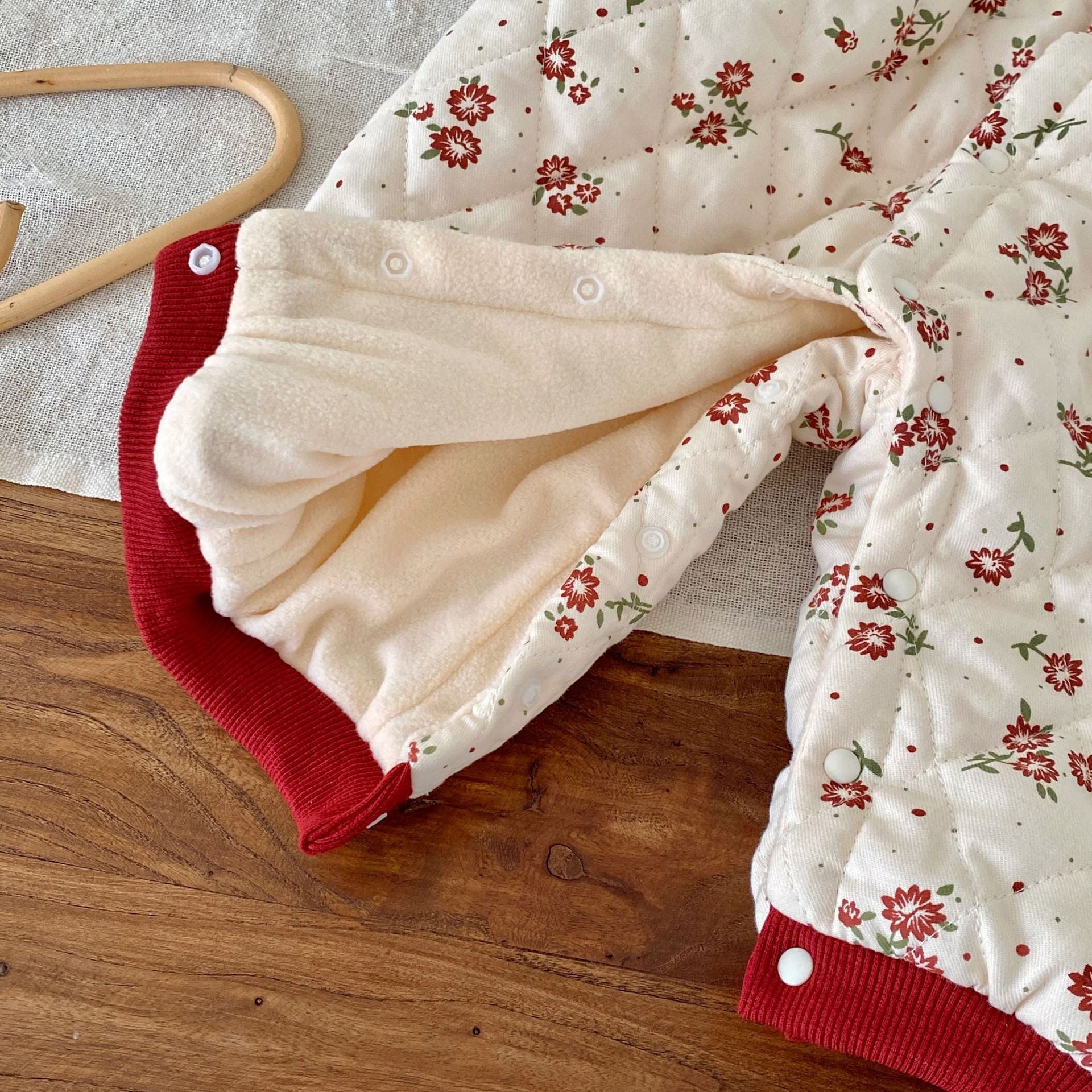 Wrap your little one in cozy comfort this winter with our adorable long-sleeve rompers featuring a charming floral pattern. Crafted with soft fleece lining, these rompers provide warmth and gentle care for delicate skin. The convenient one-piece design makes dressing and diaper changes effortless, while the playful flower motif adds a sweet touch to any outfit. Perfect for chilly days and nights, these rompers combine style with practicality—a winter essential every parent needs.