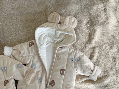Winter Baby Unisex Little Bear Head Thicken Long Sleeve Jumpsuit
