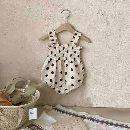 Baby Girl Dot Pattern Sling Onesie & Dress In Summer