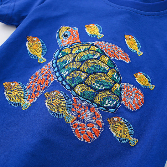Summer Boys’ Marine Animals Pattern T-shirt in European and American Style