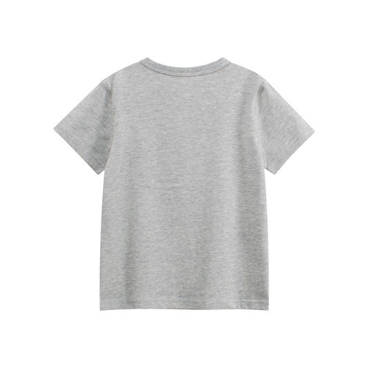 Summer Boys’ Cartoon and Letters Pattern Grey T-shirt in European and American Style