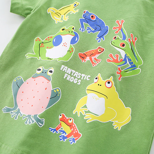 Summer Boys’ Cartoon Frogs Pattern T-shirt in European and American Style