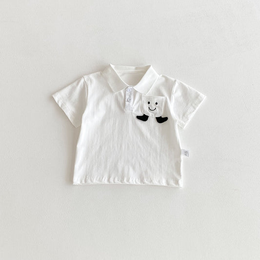 Summer Kids Boys Casual and Versatile Short Sleeves Turn-down Collar Cartoon Pocket Polo Shirt