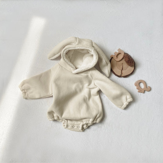 Arrival Autumn and Winter Baby Unisex Simple Fleece-Lined Long Sleeves Hooded Bodysuit